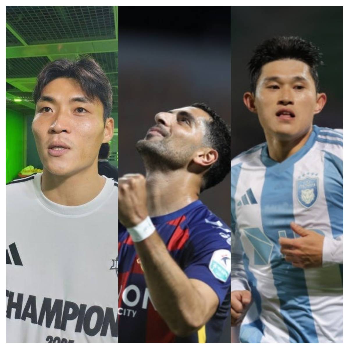 至于最佳新秀,也是悬念迭生。U23国家队的三名队友李承原(江原,左)、蔡铉佑(安养,右上)和黄度尹(首尔,右下)入围。李承原的数据是33场1球6助攻,蔡铉佑是32场4球,而黄度尹则是32场1球4助攻。如果从个人数据的角度来看李承原是13次首发,蔡铉佑是22次首发,黄度尹是20次首发。毫无疑问从球队的重要地位来看,蔡和黄不分上下,但如果看数据,李又和黄有竞争。所以综合来看,黄度尹在这两项数据都有一定竞争力,就看评委如何选择了。由于评委分布为:各俱乐部主教练(30%)、队长(30%)和媒体(40%),因此有着U20世界杯经验的李承原,大概率会获得更多的票数最终胜出。