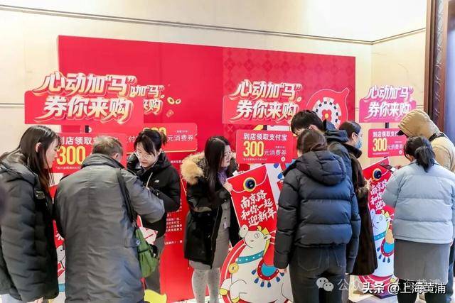 多重消费券叠加的实惠福利成为拉动消费的重要引擎,黄浦元旦消费券、“南京路和你一起迎新年”线上线下消费券与商场自有优惠叠加,让消费者尽享实在优惠。12月31日上午8点不到,商场门前已排起长队,市民争相参与“碰一下”活动领取支付宝“满800减300元”消费补贴券,500张限量名额迅速售罄,提前点燃跨年消费热情。